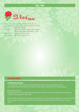 atau dilakukan oleh petugas dari Vivi Florist yang membawa tanda bukti kwitansi / invoice